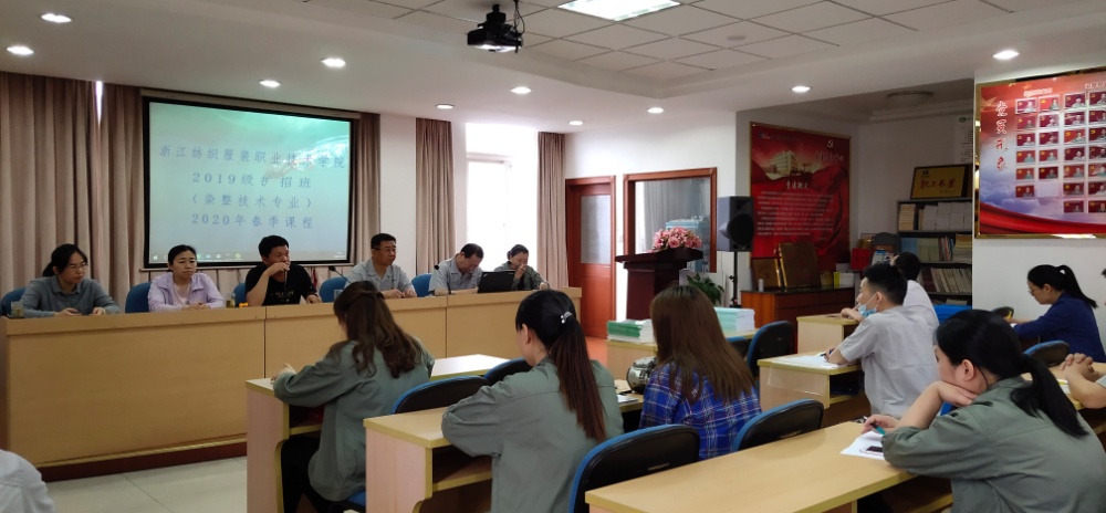 5月30日上午,浙江紡織服裝職業(yè)技術(shù)學(xué)院2019級(jí)擴(kuò)招班(染整技術(shù)專業(yè))2020年春季課程正式開課了。在課前,公司13名學(xué)員在班主任蔣老師的帶領(lǐng)下在課前進(jìn)行了簡單的開課儀式,公司董事長兼總經(jīng)理莫炳榮、副總莫榮明、總工施道妃工出席了儀式。