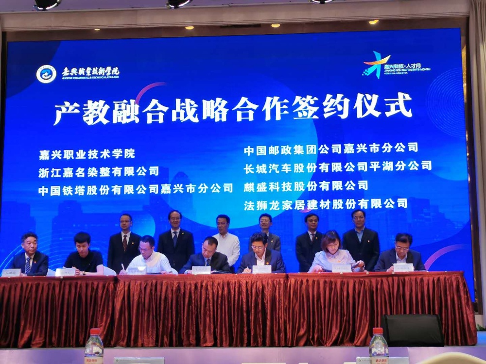 為進(jìn)一步發(fā)揮大專院校人才培養(yǎng)和龍頭企業(yè)產(chǎn)品技術(shù)現(xiàn)代化制造的優(yōu)勢(shì),推進(jìn)產(chǎn)教融合、校企合作,促進(jìn)高素質(zhì)技術(shù)、技能人才培養(yǎng),服務(wù)產(chǎn)業(yè)發(fā)展。2020年5月26日,在嘉興市人民政府和市委組織部、市財(cái)政局、發(fā)改局、經(jīng)信局、人社局等部門的共同見證下,浙江嘉名染整有限公司等26家嘉興市行業(yè)龍頭企業(yè)與嘉興職業(yè)技術(shù)學(xué)院簽訂了《產(chǎn)學(xué)融合戰(zhàn)略合作》協(xié)議,雙方了建立戰(zhàn)略合作關(guān)系,成為戰(zhàn)略合作伙伴。院企建立人才培養(yǎng)合作關(guān)系后,將在人才的培養(yǎng)、教學(xué)資源共享和科學(xué)研究等范圍內(nèi)更好地合作,互利共贏并促進(jìn)教育事業(yè)的建設(shè)和發(fā)展。