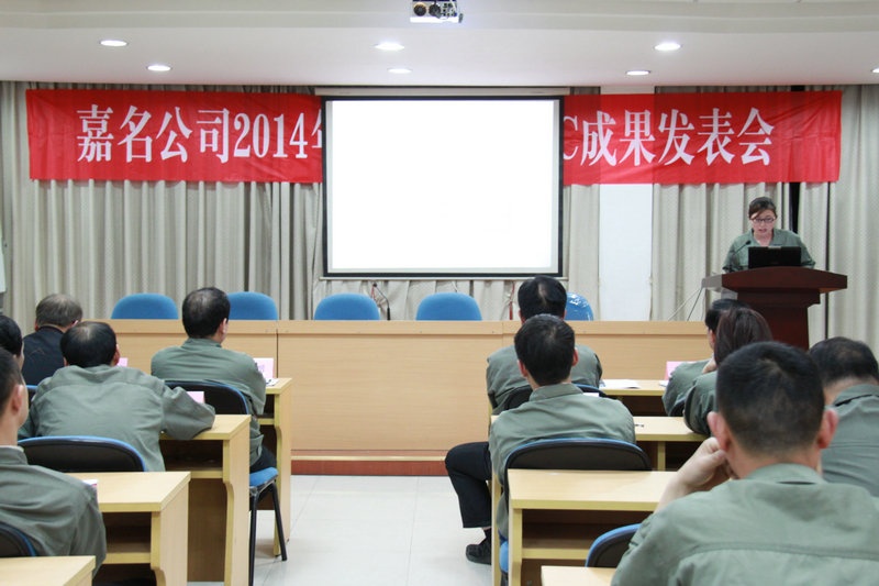 莫總在成果發表結束后講了話,他說,第四屆QCC成果的發表,再次表明了嘉名員工忠誠企業、服務企業的優良素質,體現了員工分析問題和解決問題的能力,傳播了強烈的正能量。他強調,我們一定要把開展QC小組活動堅持不懈地搞下去,并不斷深化完善,使QC小組活動體現群眾性、廣泛性、常態性,要讓更多的員工都投身于QC小組活動,不僅是生產部門參與,營銷部門、管理部門也要積極參與,在全公司形成一種常態化的群眾性技術、管理攻關創新活動。要不斷提高開展QC小組活動的質量,解決更多的疑難雜癥,發表更多的優秀成果,把好的成果積極推廣運用,使我們的活動成為有效勞動,智慧勞動。他要求各部門加強對開展QC小組活動的組織領導和指導,對積極參加QC小組活動,并取得較大成績的員工,要進行激勵,要選派他們走出來參觀學習和培訓,使之不斷提高開展QC小組活動的積極性和創新能力。