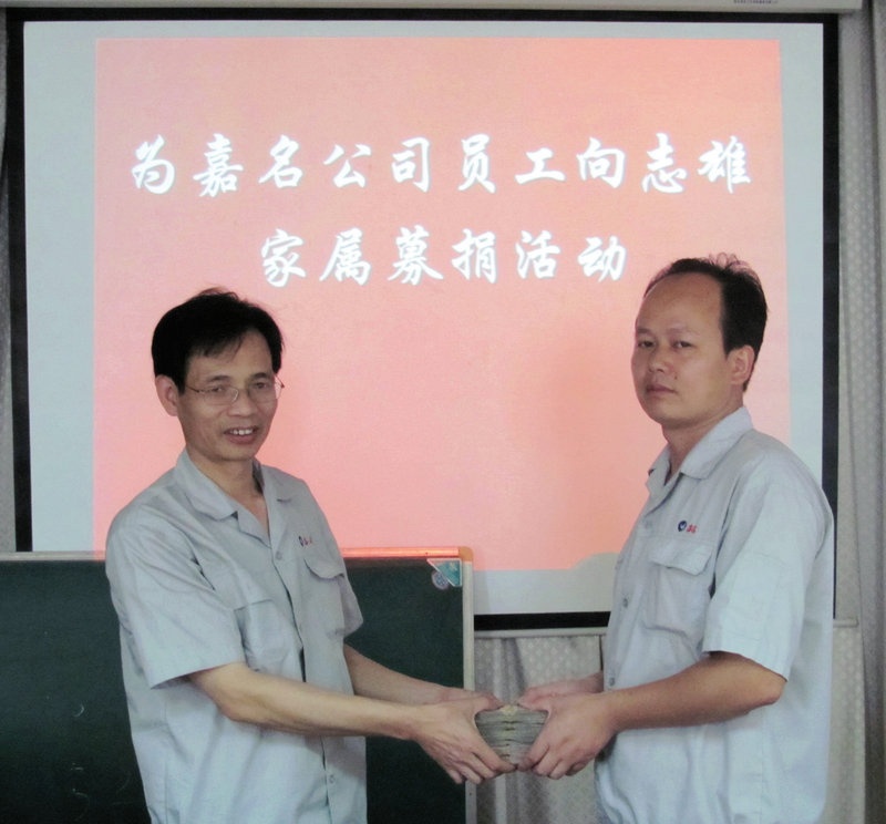 一方有難,八方支援;涓涓細流可以匯聚成浩瀚大海,點滴愛心可以凝聚成愛的海洋。嘉名公司這次募捐活動,捐款人數之多,充分體現了嘉名人善良的心靈,體現了嘉名公司的凝聚力,向志雄是不幸的,我們衷心希望向志雄的親人能一路走好。